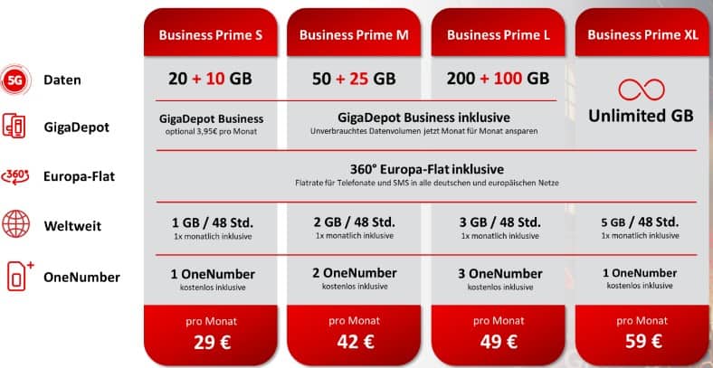 14. Mai 2025Neue Vodafone Business Prime Mobilfunktarife mit GigaDepot Business, 360º Europa-Flat und exklusiven top Konditionen