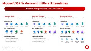 Zusätzlich erhalten Sie bei uns alle Microsoft 365 Business & Enterprise Lizenzen mit bis zu 25% Rabatt, z.B. MS 365 Business Premium für nur 16,22€/Monat statt 21,63€/Monat, exklusiv und nur zusammen mit Vodafone Mobilfunk oder Vodafone Internet. Damit haben Sie für nur 50,22€/Monat das absolute Rundum-Sorglos-Paket für Ihre Mitarbeiter bestehend aus Mobilfunk unlimited und Microsoft 365 Business Premium.